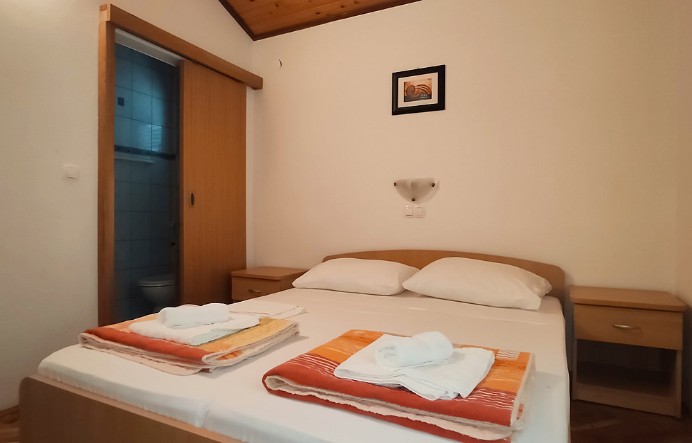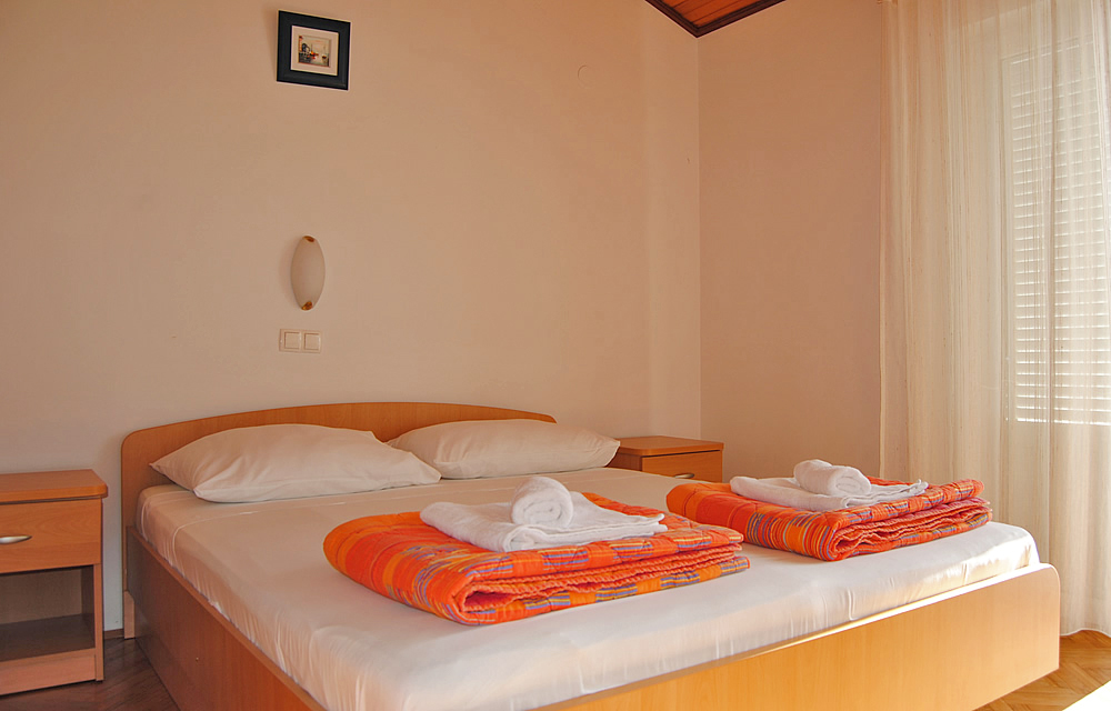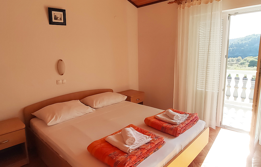 Die Ferienwohnung Nr. 1 befindet sich auf der zweiten Etage und hat 2 Zimmer, 2 Badezimmer, eine Küche, Balkon, Vorraum, eine Klimaanlage, in der Vor- und Nachsaison gibt es auch Heizung, hat SAT/TV und Grill im Freien. Vor dem Objekt befindet sich ein Parkplatz. Die Bezahlung erfolgt in der Art und Weise, dass bei der Reservierung 20 % im Voraus bezahlt wird und der Rest bei der Anreise in das Objekt. Preis auf Anfrage!